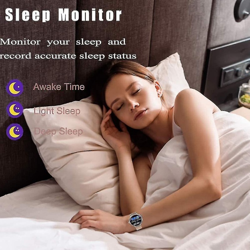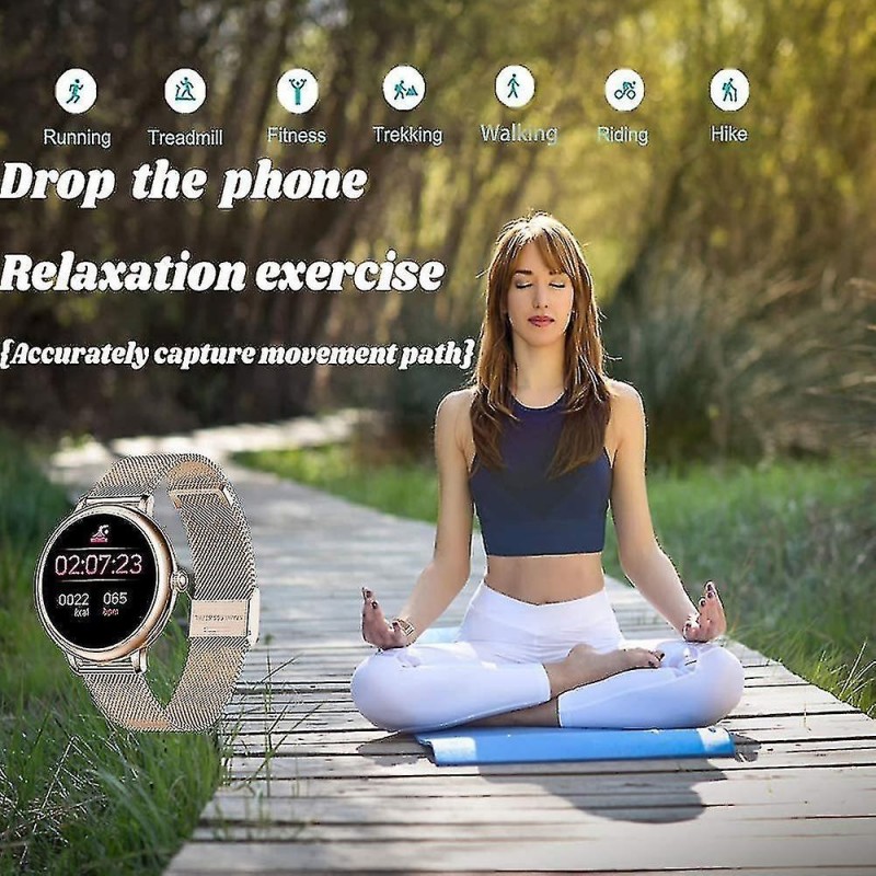 Orologio intelligente impermeabile con schermo touch completo L'aspetto elegante di questo orologio intelligente con schermo touch completo è il regalo migliore per le donne, misura la frequenza cardiaca, la pressione sanguigna, il monitoraggio del sonno, il ciclo fisiologico femminile, contapassi, chilometri sportivi, consumo calorico, fotografia a distanza, promemoria sedentari, molte modalità sportive, ecc. Impermeabile, antisudore e antipioggia nella vita quotidiana. 8 modalità sportive e impermeabilità IP67 Tieni traccia delle attività di tutto il giorno, inclusi passi, distanza e calorie bruciate. 8 modalità sportive monitorano i tuoi dati di movimento per personalizzare il tuo allenamento. Corsa, ciclismo, calcio, ecc. Puoi monitorare le tue bracciate in piscina e usarle sotto la doccia fredda. Notifiche e SMS Ricevi chiamate, SMS e messaggi SNS, Facebook, WhatsApp, Twitter, Instagram, ecc. Quando ricevi una notifica, l'orologio vibrerà per ricordartelo. Basta collegare il braccialetto al telefono tramite l'app e impostarlo nell'app. Nessuna chiamata o messaggio andrà perso. Cardiofrequenzimetro e monitoraggio del sonno Con sensori ottici intelligenti integrati, l'activity tracker monitora la frequenza cardiaca in tempo reale e rileva automaticamente la frequenza cardiaca. Inoltre, monitora efficacemente la qualità del tuo sonno e fornisce un'analisi completa della qualità del sonno per aiutarti a sviluppare uno stile di vita più sano. Compatibilità e altre caratteristiche: questo orologio è compatibile con smartphone con iOS 9.0 / Android 4.4 o versioni successive e Bluetooth 4.0 o versioni successive. Questo orologio offre anche sveglia, cronometro, controllo remoto della fotocamera, previsioni del tempo e regolazione della luminosità. (Non compatibile con iPad)